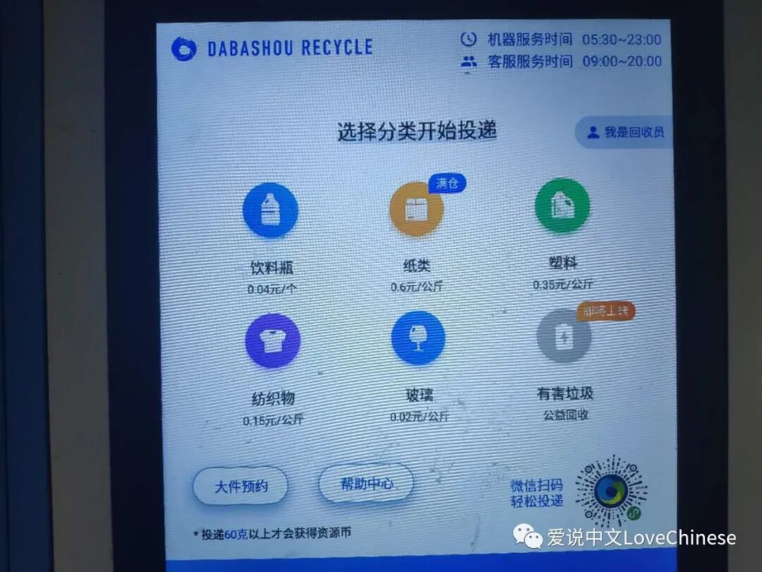 哒哒哒,最牛的是浙江省在每个小区里还有智能垃圾回收站,看下图,哈哈,你用微信扫一扫,然后门就打开了,你放垃圾进去会有钱!!!有钱!有钱!重要的事说三遍!钱会打到你的微信支付账户上,是不是很牛!就像智能快递柜一样。